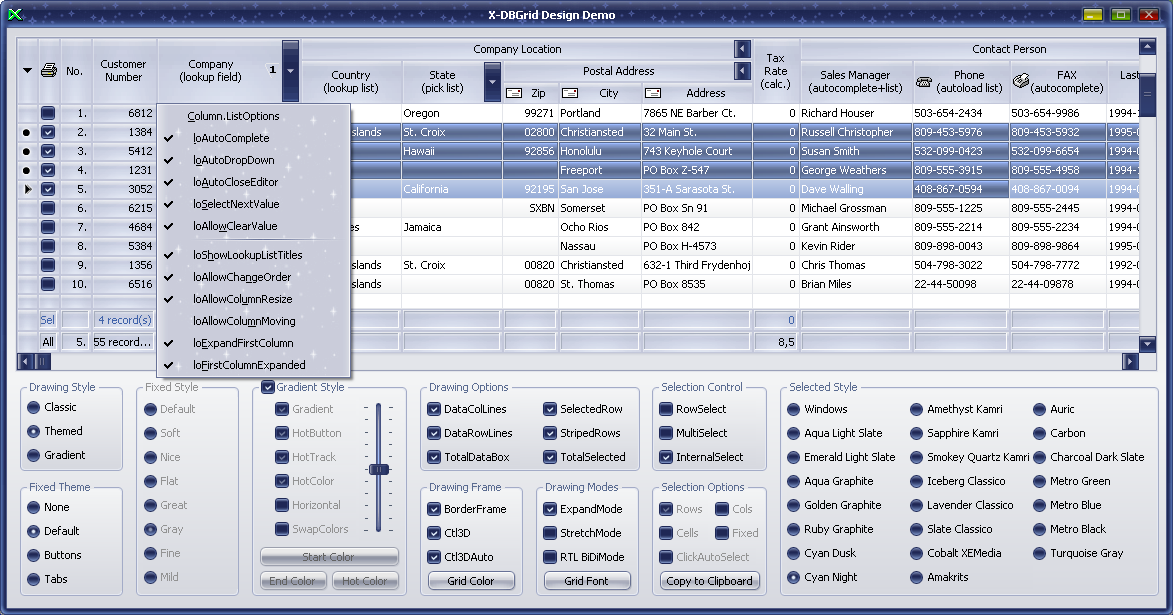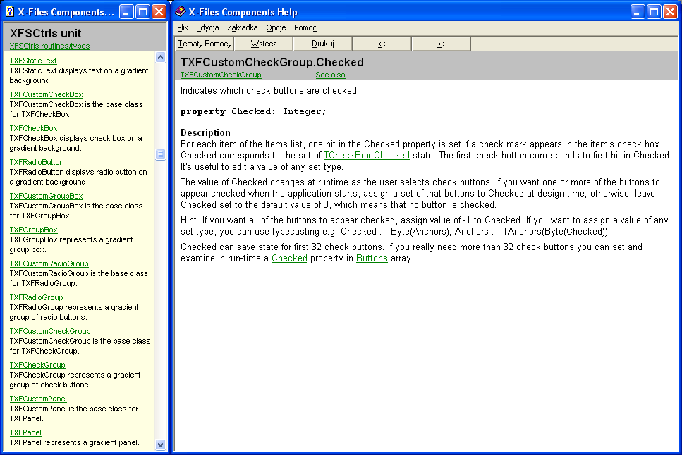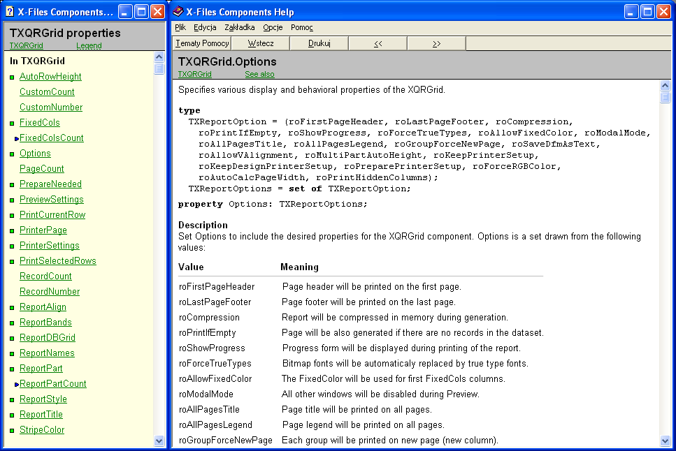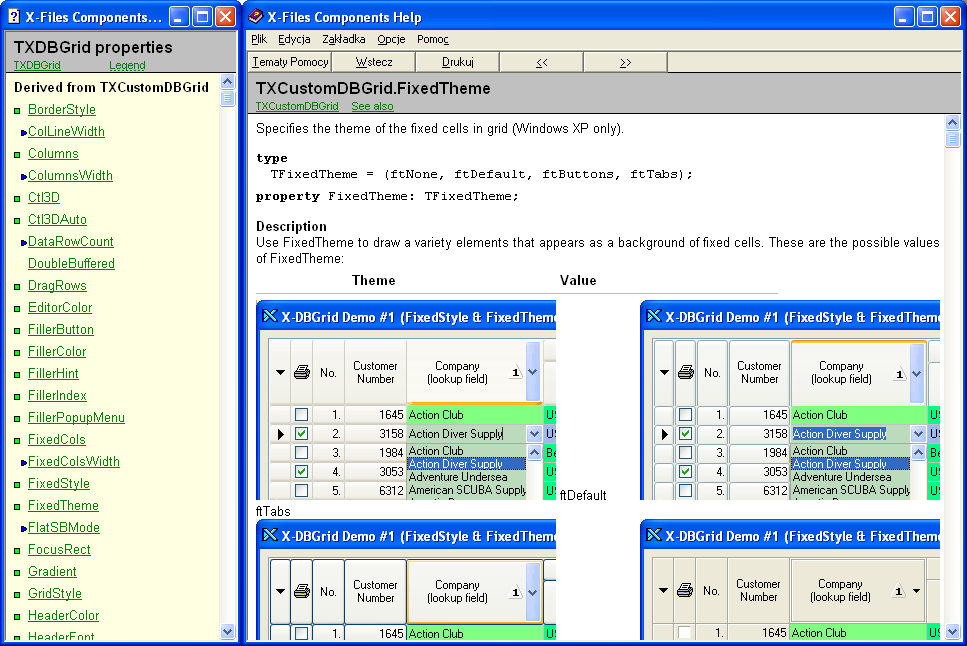 Contains all components/classes included in X-DBGrid Component package and the following: