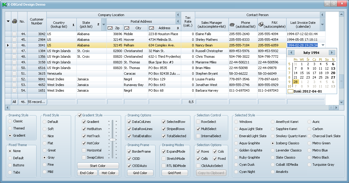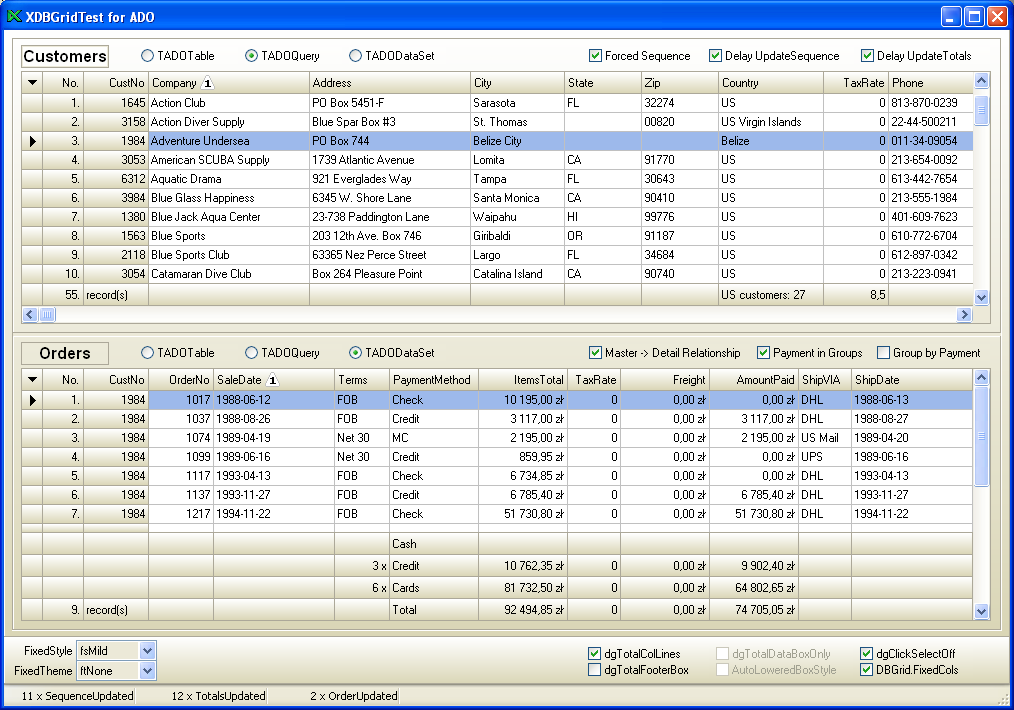 TXDBGrid component is a powerful functional extension of standard TDBGrid