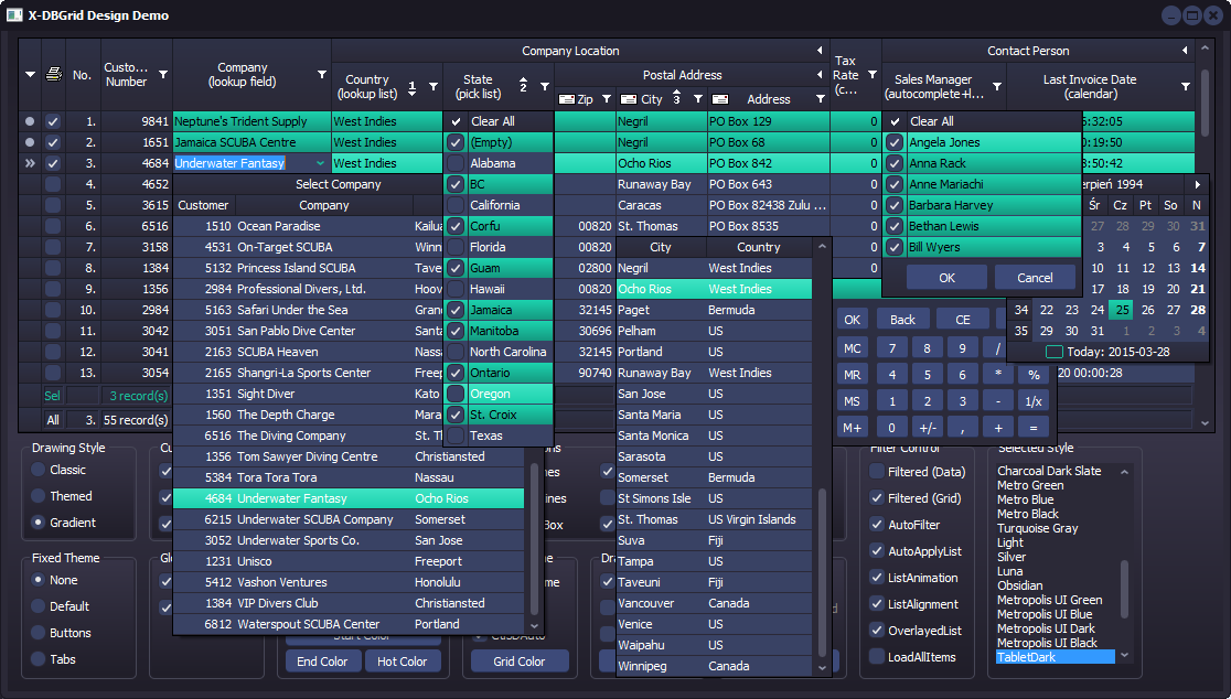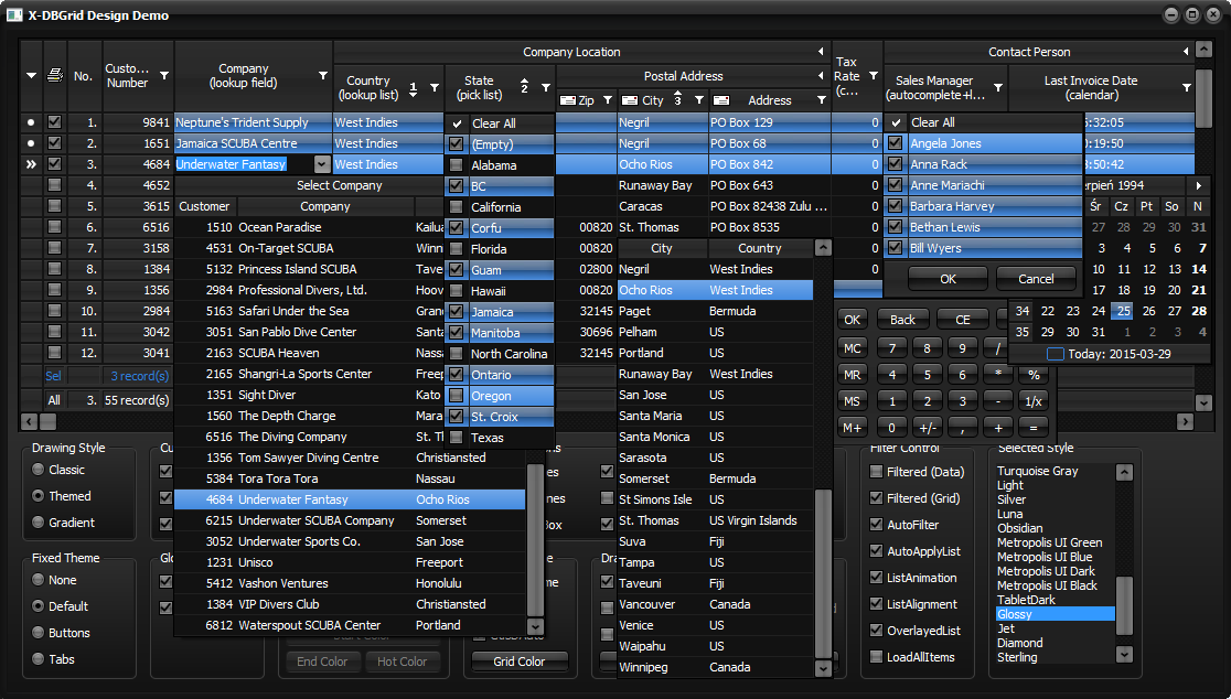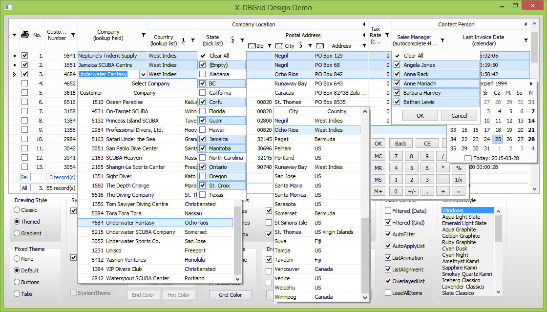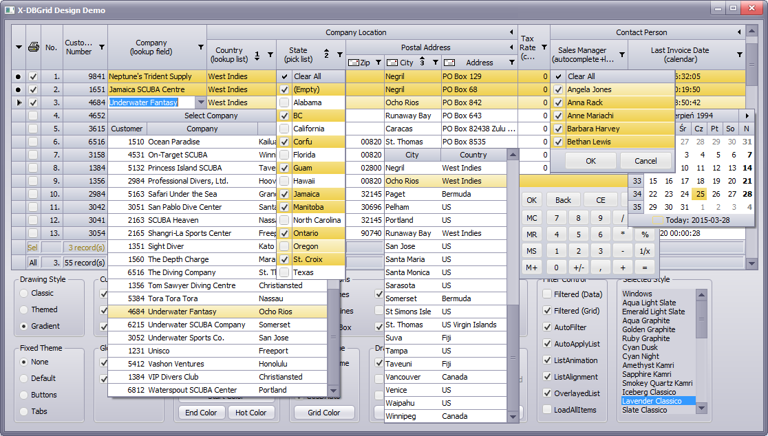 and multicolumns sorting, enhanced lookup list, data list, calculator, calendar,