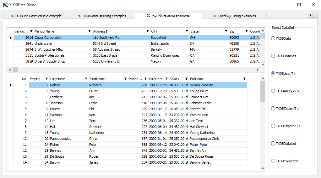 - New X-DBData Demo 11 - LocalSQL using examples (RAD >= XE5)